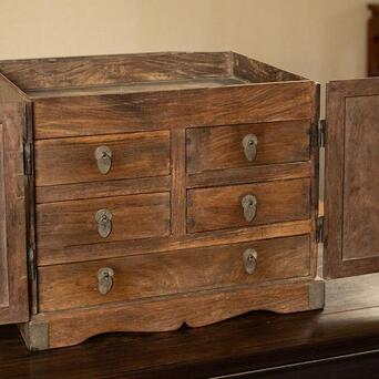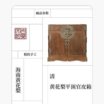 官皮箱是明式小体积箱类家具中的精品,从宋代镜箱演变而来,形体不大但结构复杂,是明清时期比较流行的家居实用器物,一般用于盛装贵重物品或文房用具,又由于方便携带,常用于官员巡视出游之用,故北京匠师俗称“官皮箱”。